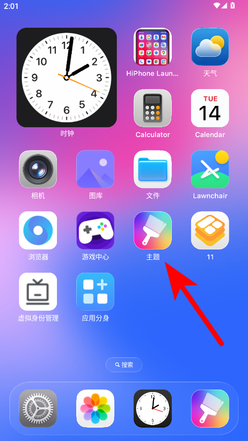1、在手机主屏幕,点击主题应用图标进入主题界面。