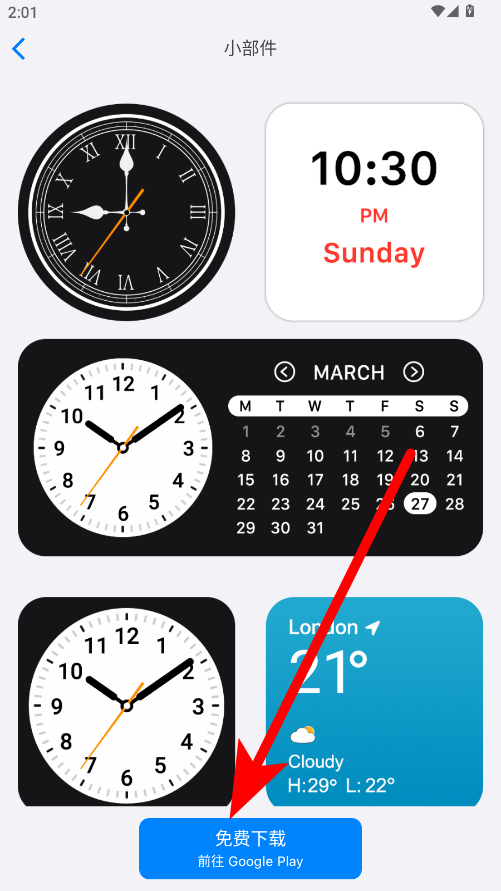 4、点击所选小组件进入详情页面,再点击免费下载按钮,即可添加到主屏幕。