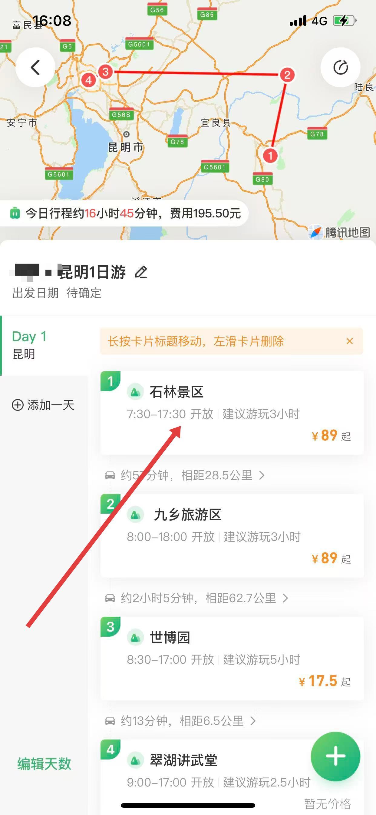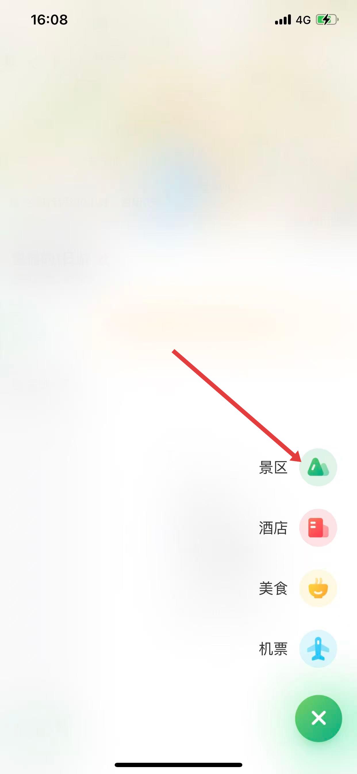 4、在弹出的选项中,选择需要加入行程的选项,如景区。