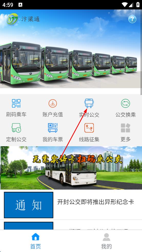 1、打开汴梁通软件,在主界面找到“实时公交”选项,点击该选项,进入实时公交查询页面。