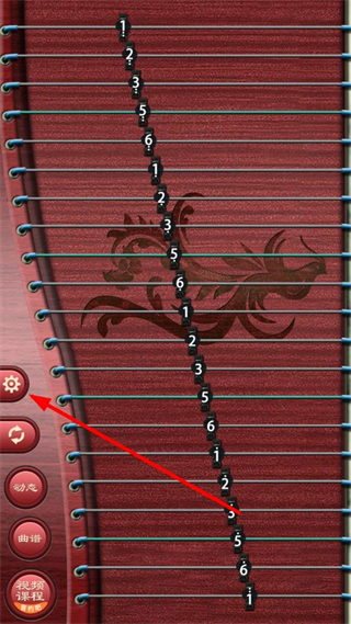 1、打开古筝app,点击界面左侧的齿轮形状设置图标,进入设置页面。