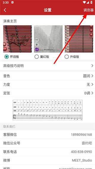 2、在设置页面,点击右上角的调音器选项。
