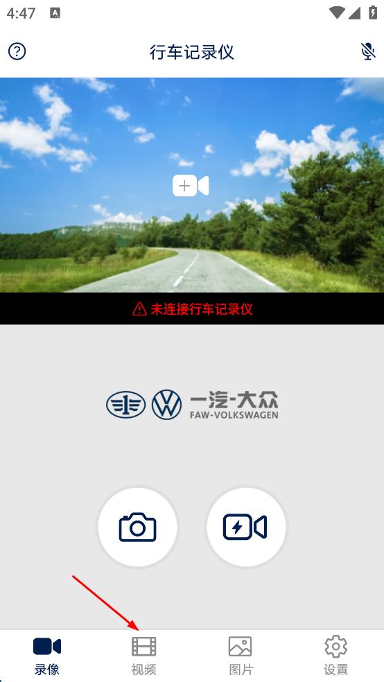 3、完成连接操作后,回到行车记录仪主界面,点击底部“视频”选项,进入视频页面。