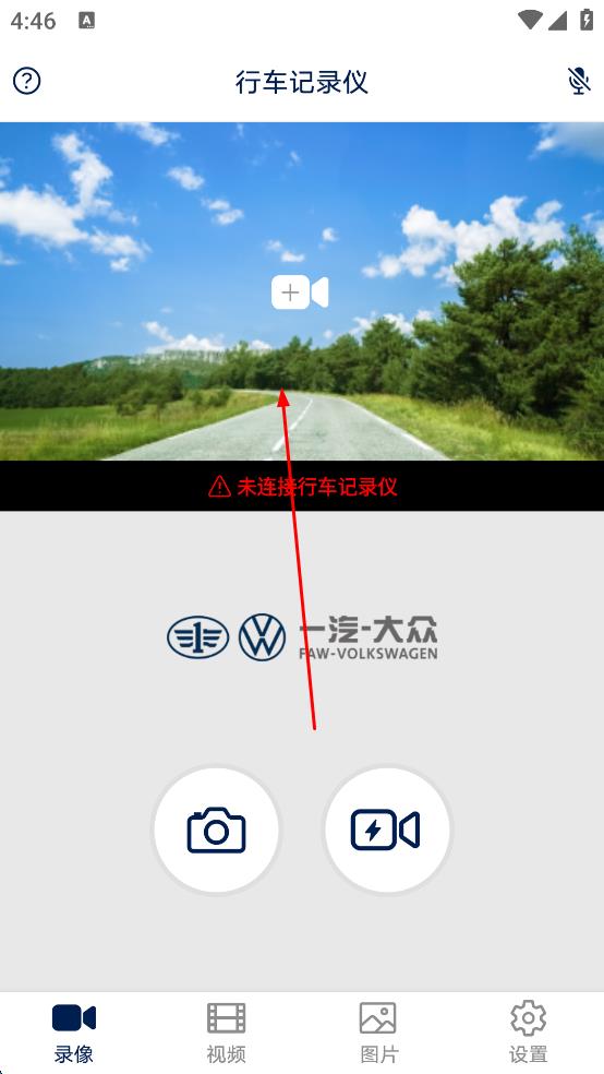 1、看到“未连接行车记录仪”提示后,点击相关连接引导区域,进入连接向导页面。