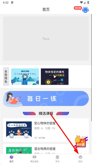 1、打开物理精讲精练app,点击底部导航栏中的我的选项。