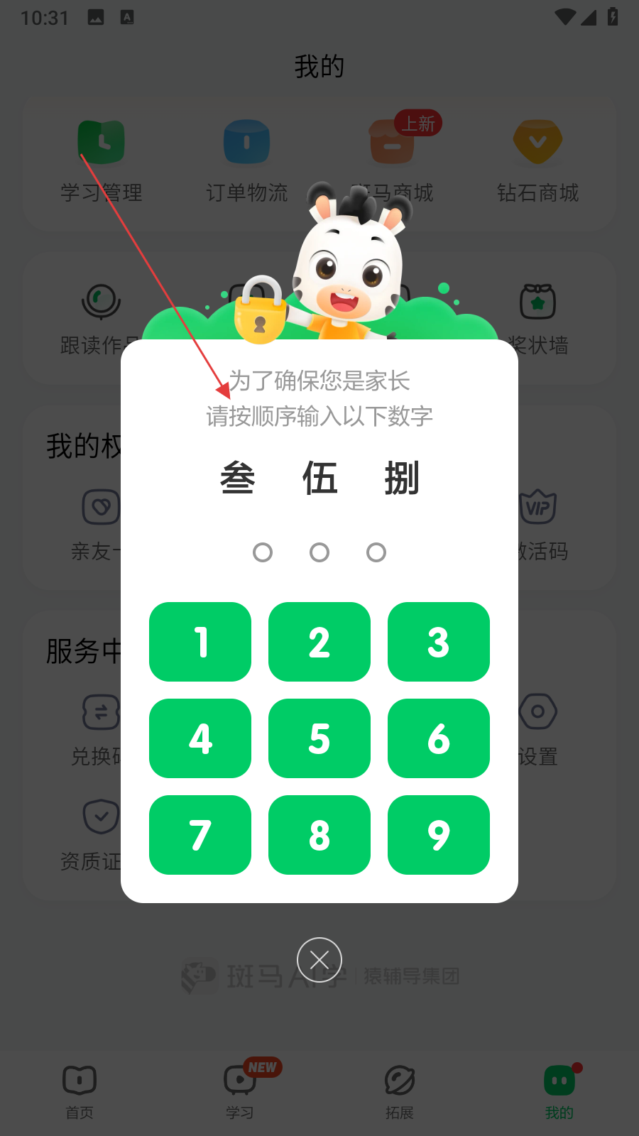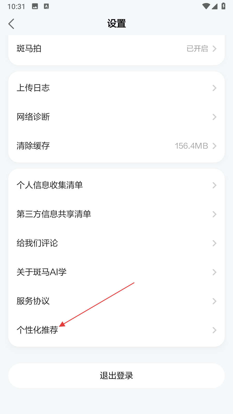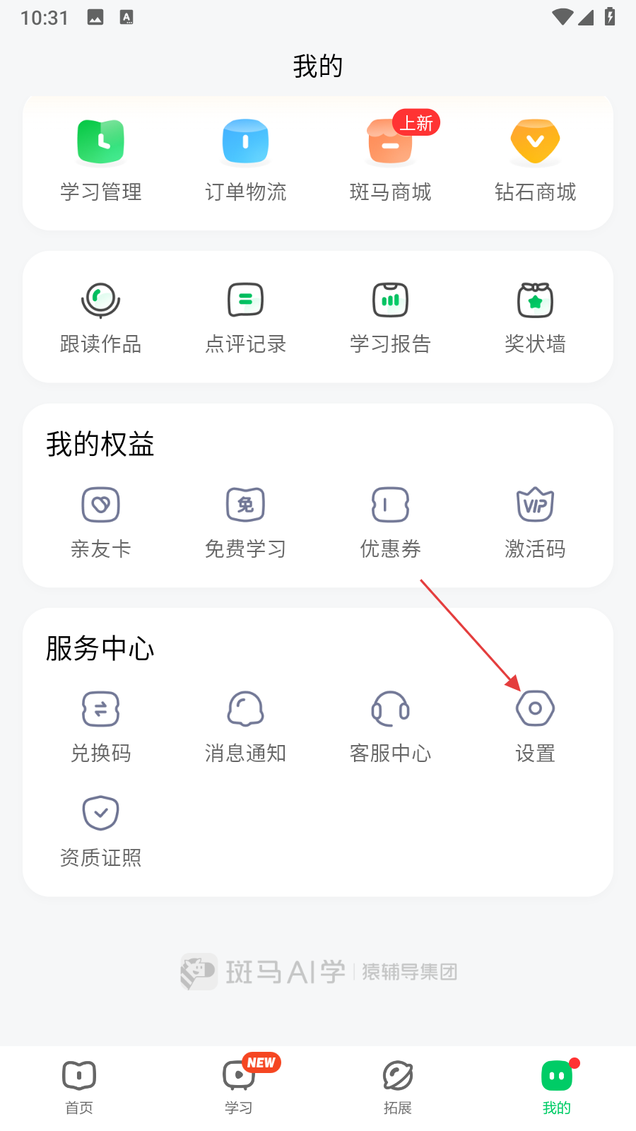 1、打开斑马AI学APP,在个人页面中,找到并点击设置选项。