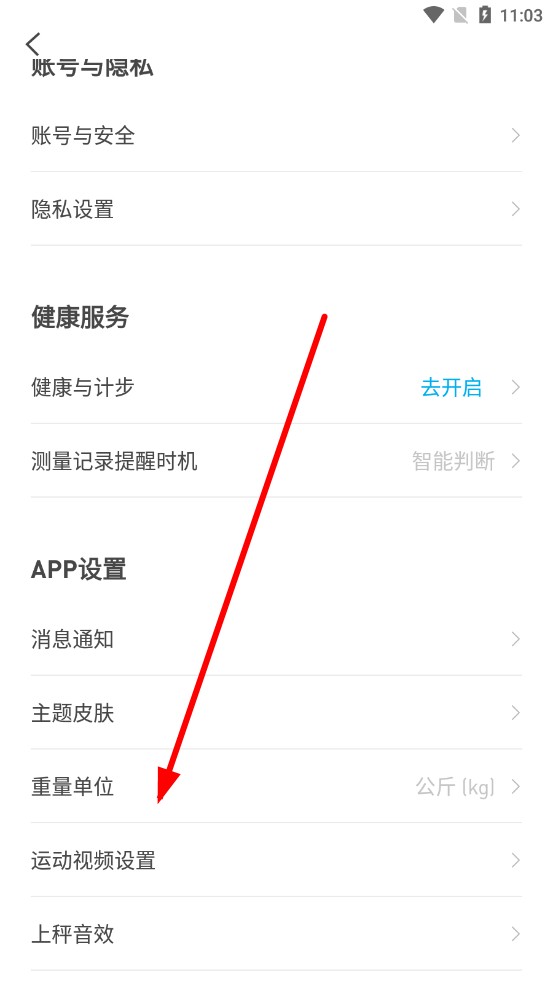 2、进入通用设置界面,下滑在「APP设置」栏找到「重量单位」选项并点击。