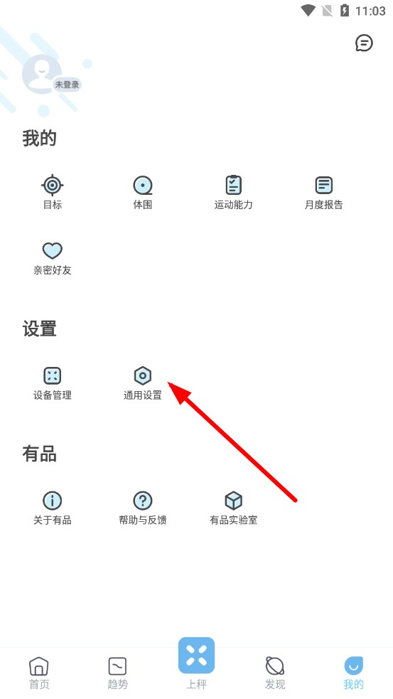 1、打开有品APP,点击底部导航栏「我的」,在个人页面找到「设置」板块中的「通用设置」。