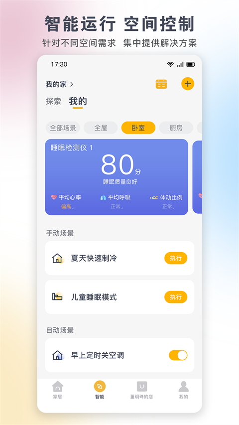 2、「设备控制」无论何时何地,轻松交互、随心控制智能家居设备。