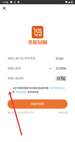 3、在跳转到登录页面中,需先点击勾选下方同意按钮后进行登录操作。