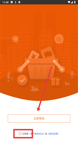 1、在打开app勾选已同意按钮后,通过点击立即体验按钮,即可进入app使用。