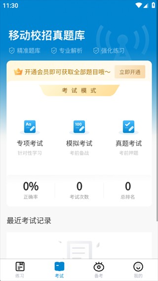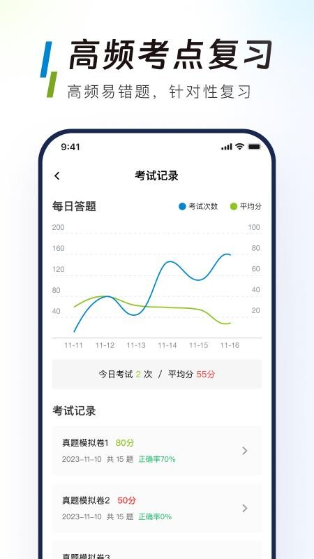 在考试记录中用户能够及时查看自己的考试情况,用户能够随时获取更多考试数据;