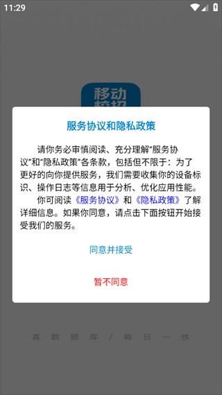 1、下载并安装后打开软件,阅读服务协议和隐私政策后点击“同意并接受”。