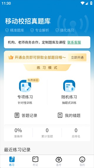 2、进入软件后,可进行专项练习和随机练习,错题会自动收集,方便随时巩固。