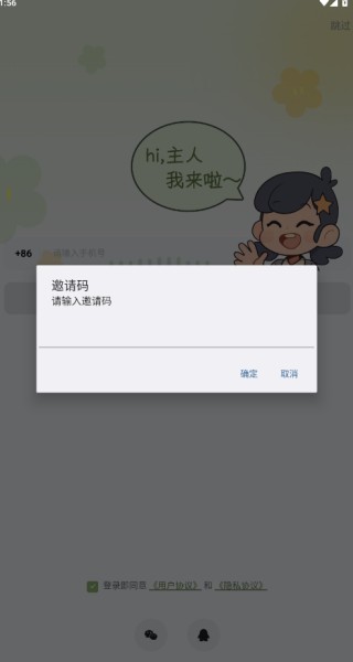 3、同意协议之后,会弹出邀请码输入框,有邀请码可以填,没有点取消;