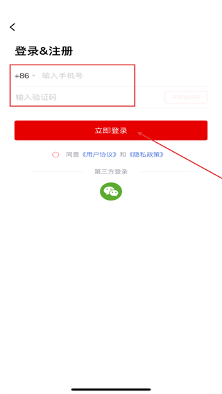 3、输入手机号、验证码,再点击立即登录的按钮即可完成登录。