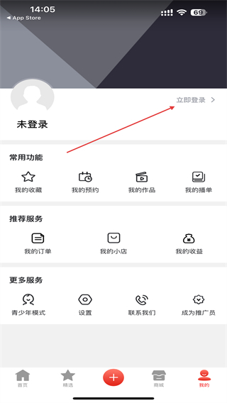 2、进入我的页面内,在未登录的区域右侧点击立即登录。