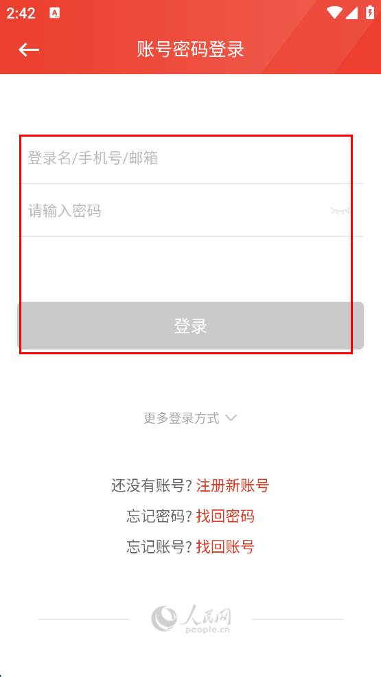 4、在账号密码登录页面输入登录名或手机号等账号信息,输入密码,点击登录按钮完成登录。