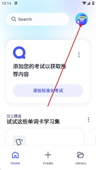 1、打开Quizlet app,点击首页右上角的头像图标。