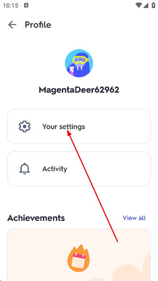 2、在打开的Profile页面中,点击Your settings选项。