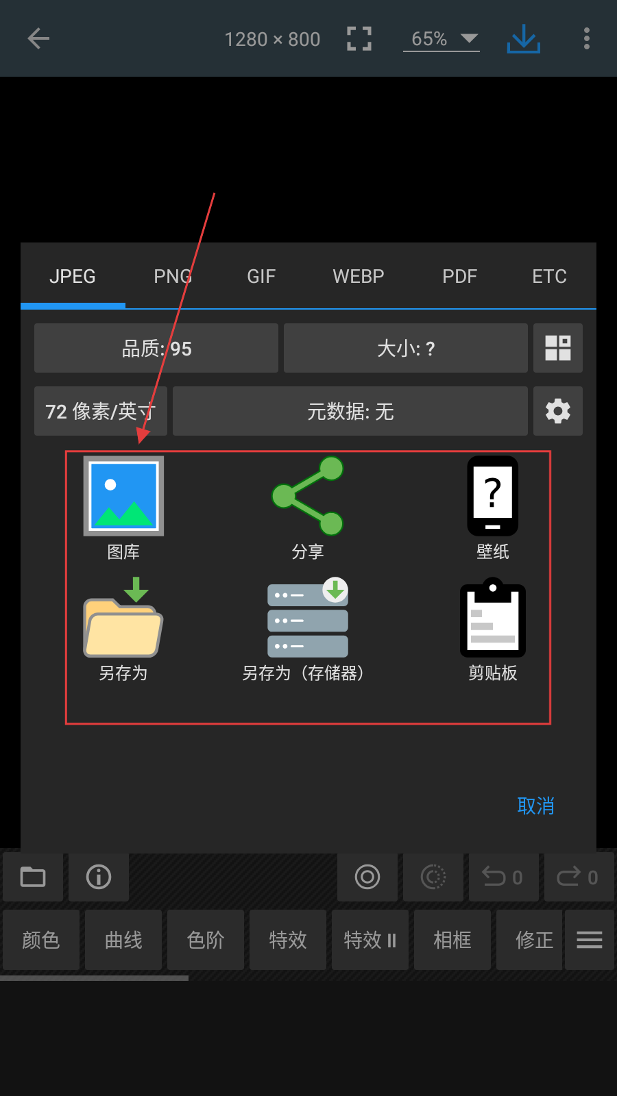 4、点击保存之后,按需选择保存到图库或者分享做壁纸。