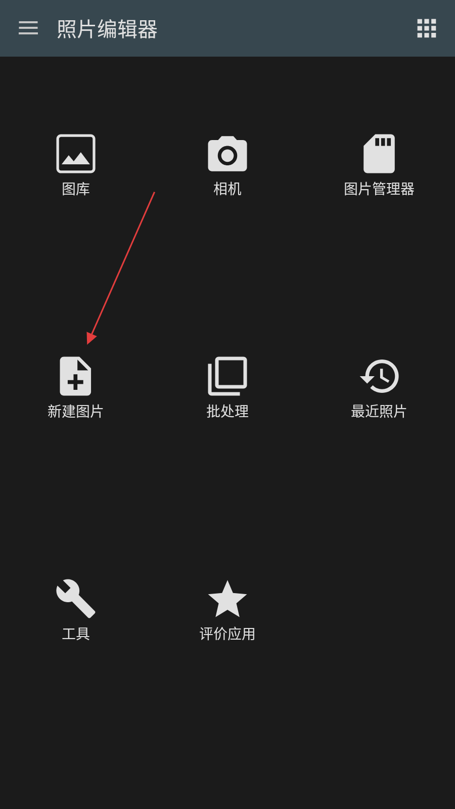 1、打开照片编辑器,点击 新建图片。