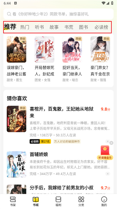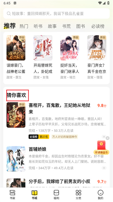 5、同时页面中间的【猜你喜欢】的功能也可以帮助用户们进行感兴趣小说的查找。