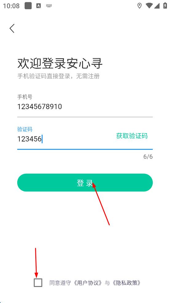 4、找到“同意遵守用户协议与隐私政策前的方框,点击勾选,然后点击“登录”按钮完成登录。