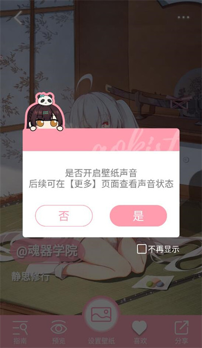 4、最后壁纸是有音乐的,所以最后一步就是询问用户是否开启壁纸的声音,我们可以选择是或者否都可以。