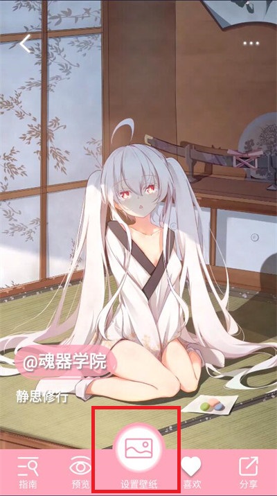 3、然后在详情页中我们就可以看到下方的【设置壁纸】点击设置就可以把改壁纸设置为我们的手机桌面壁纸;