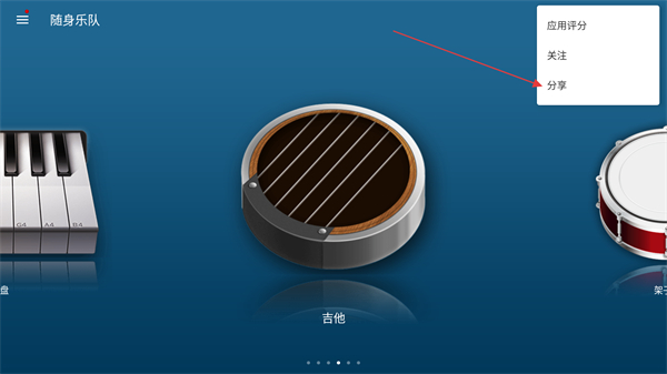 1、打开随身乐队APP,进入首页点击右上角三个点的图标。