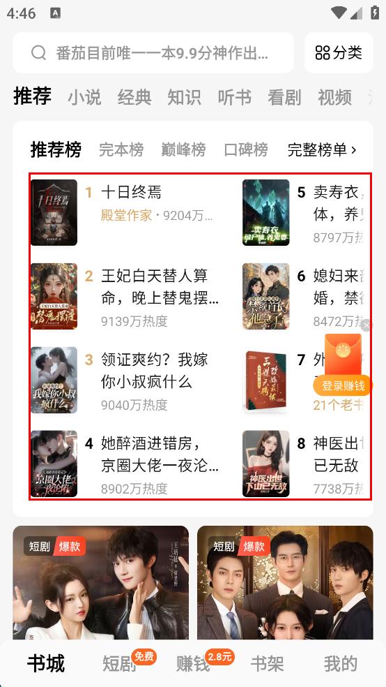 番茄免费小说app功能齐全的小说阅读软件,软件里面收集的书籍小说特别多,能满足各个年龄段的所有人,这个软件简直就是为爱阅读的你量身打造的,更何况还开通了阅读赚钱模式,用户只要在软件里面看书到达一定时间就可以得金币,可以兑换现金红包,你还在等什么快来安装体验吧。