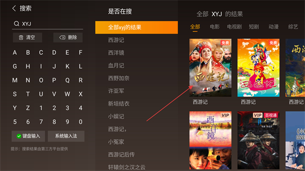 3、输入后,在搜索结果中找到并点击目标影视即可。