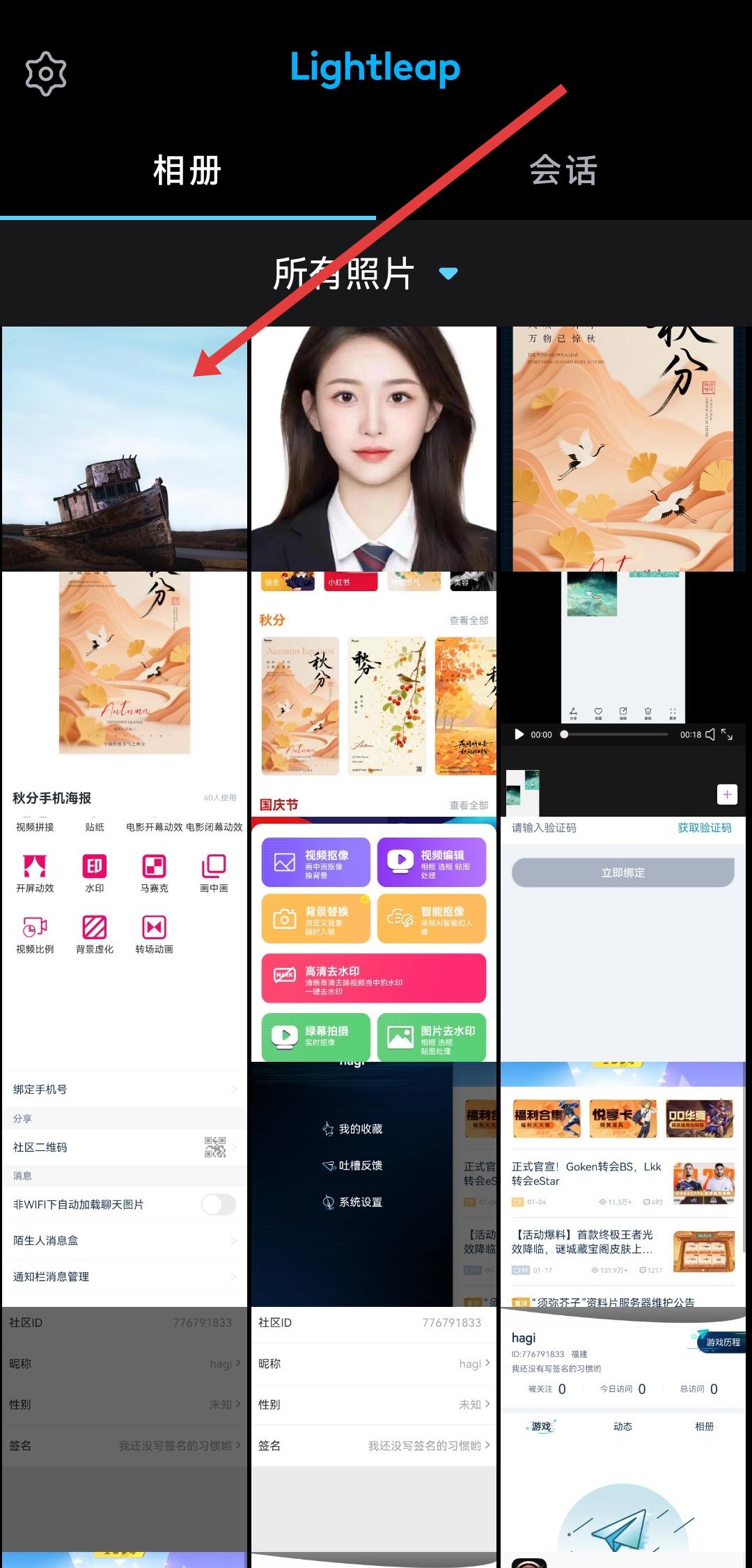 1、在Lightleap的相册界面,点击需要更换背景的照片,进入编辑页面。
