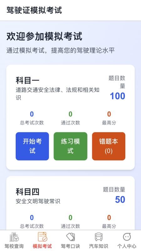 还提供了线上的驾照模拟考试,用户可以随时开始考试来检验自己的考试成绩,一键备考。