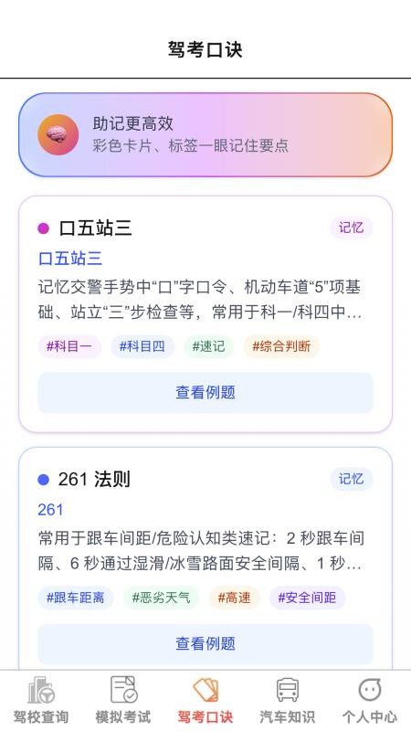 用户也可以查看相关的驾考口诀,掌握多种口诀技巧,便捷实现简单记忆。