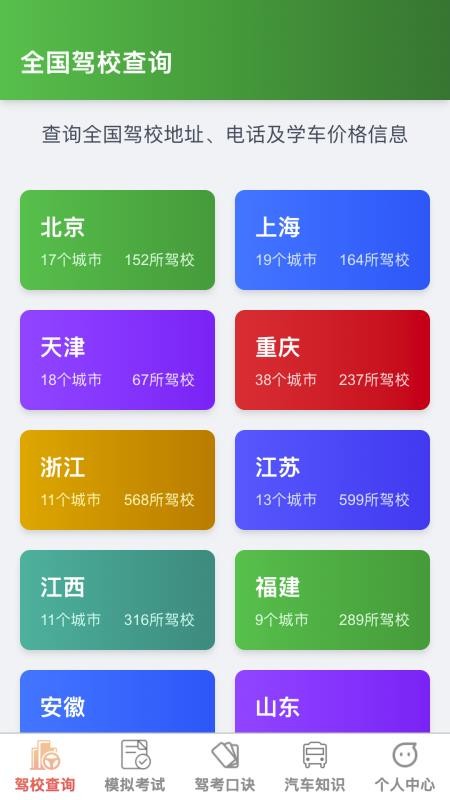 软件提供了全国驾校的查询,对自己附近的驾校可以轻松查询,实时查询驾校的位置和价格。