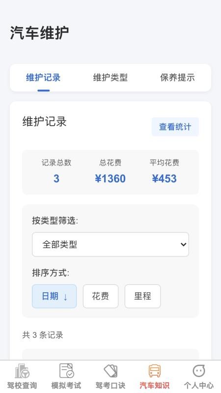 在汽车知识模块中可以探索汽车维护知识,实时进行维护记录,轻松养护自己的爱车。