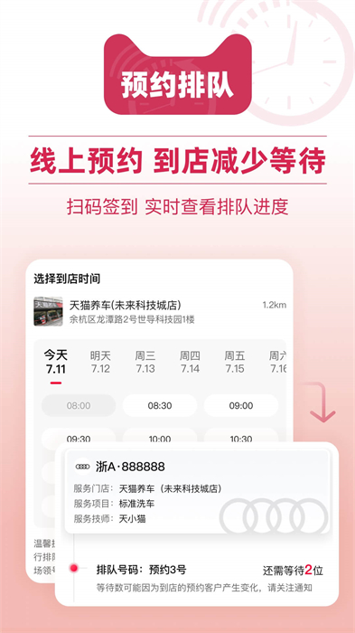 3、服务预约,车主可通过APP在线预约服务时间,到店即服务,真正零等待!