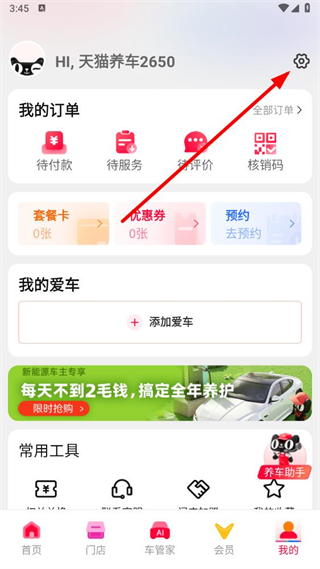 1、打开天猫养车app,点击底部导航栏中的我的选项。