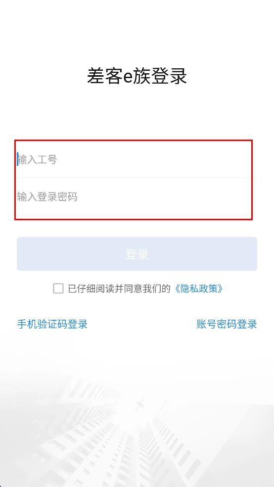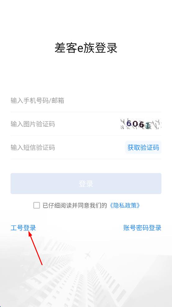 4、勾选已仔细阅读并同意我们的隐私政策,然后点击“登录”按钮,完成工号登录操作。
