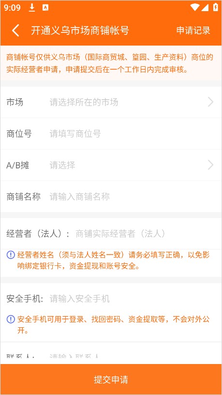4、最后点击页面底部的“提交申请”,按照提示逐步完成义乌购卖家功能的开通。