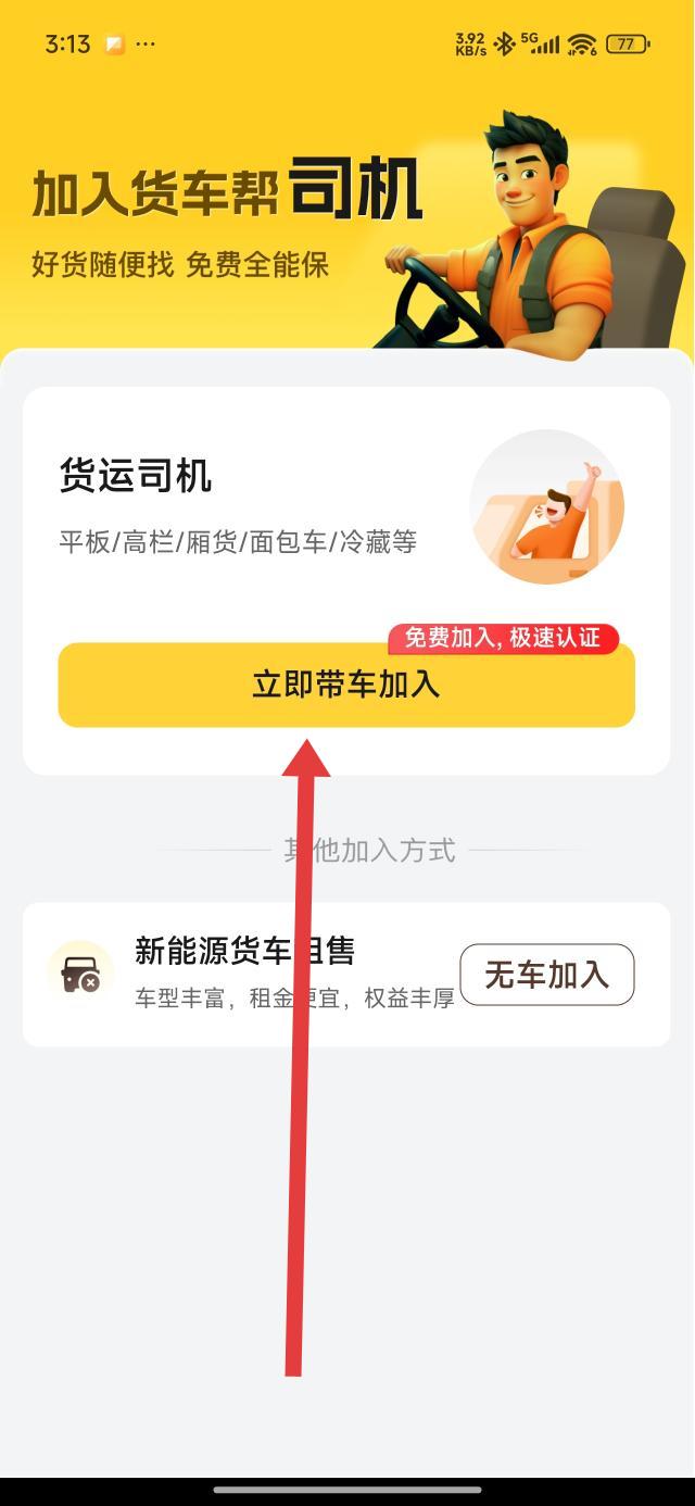 2、进入加入页面,若有运营车辆,可以点击立即带车加入按钮。
