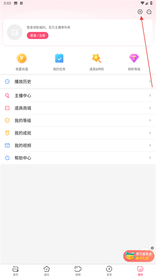 2、在我的页面内,点击右上方设置的功能按钮。
