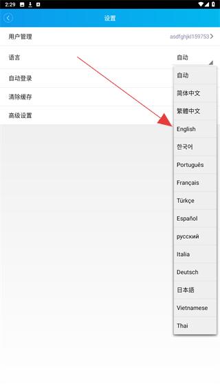 4、点击后展示出各种不同的语言,找到并点击English即可。