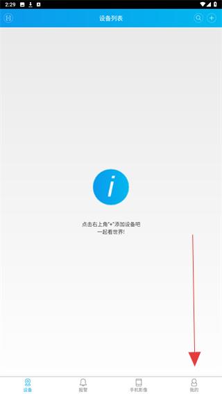 1、启动监控眼APP,进入首页点击右下角我的功能图标。