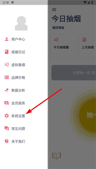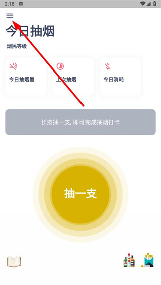 1、打开今日抽烟app,点击左上角的菜单图标。