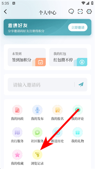 2、在个人中心的页面,点击浏览记录,进入浏览记录的页面。