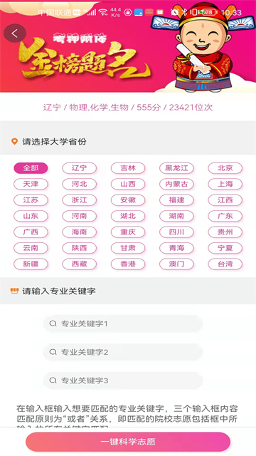 2、科学志愿填报:应用内的志愿填报功能通过对学生的成绩和兴趣进行综合分析,提供科学的志愿填报建议,帮助学生选择适合的大学和专业。