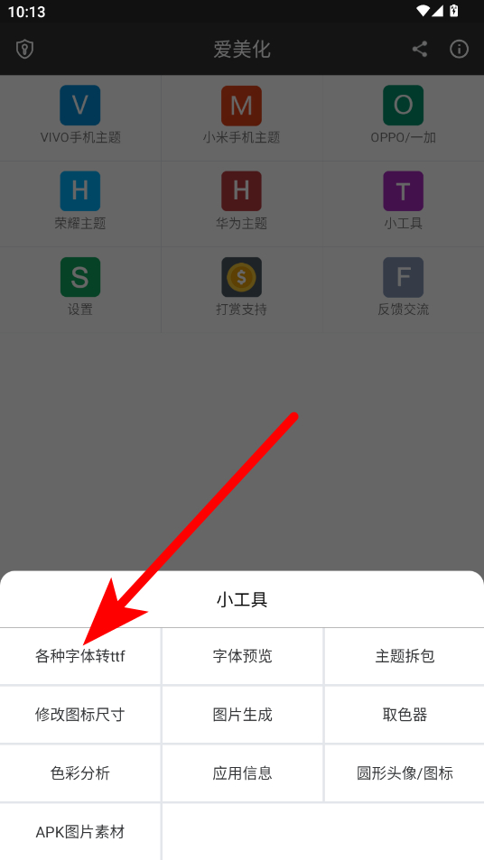 3、在小工具界面中,点击“各种字体转ttf”选项。